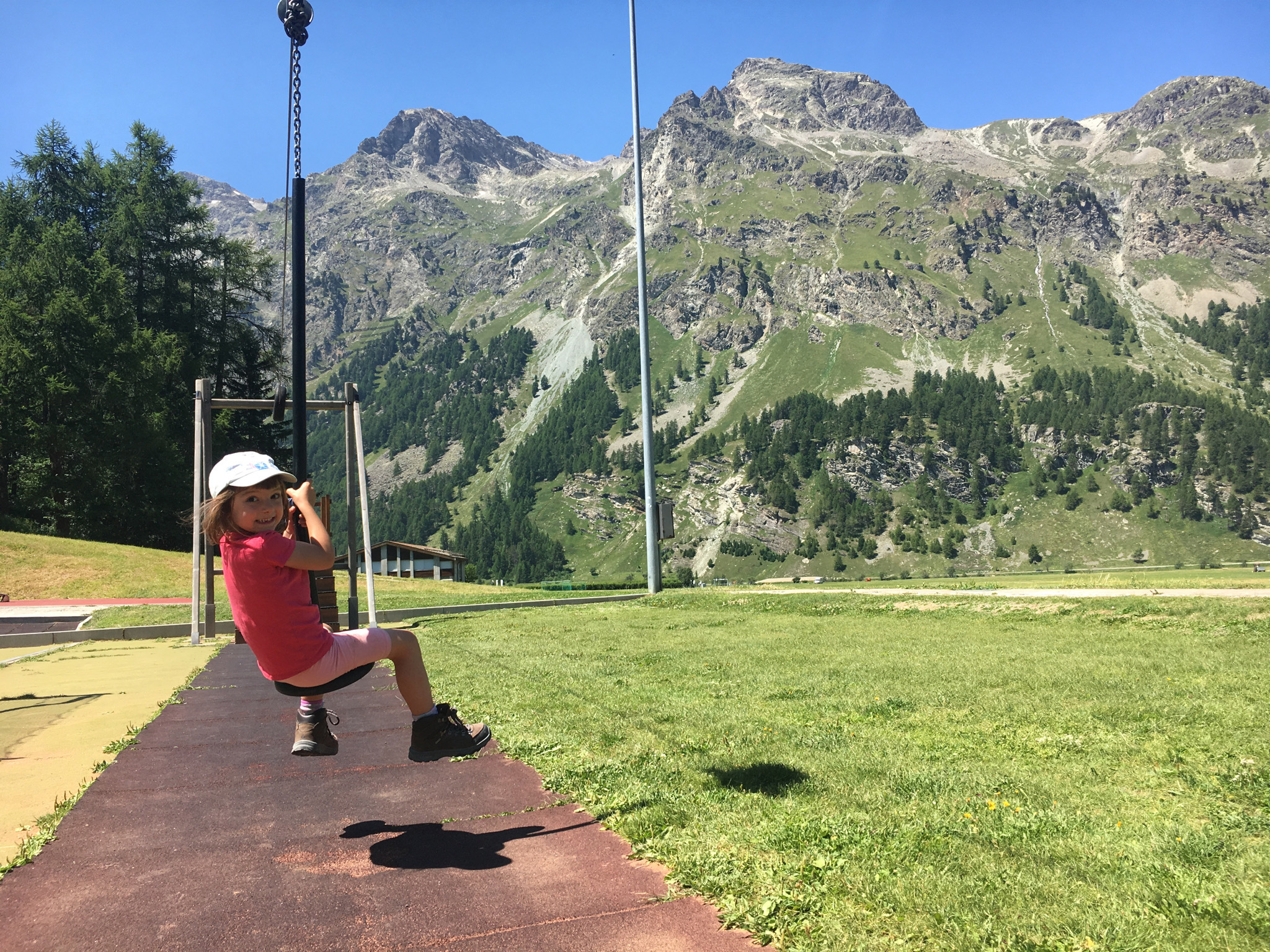 C’est ici que le jeune Friedrich Nietzsche, fragile de santé, a passé sept étés à se reposer, tout en énonçant les principes de son opus magnum » Ainsi parlait Zarathoustra ». (J’aimerais pouvoir me reposer comme ça aussi.) La maison qu’a habitée Nietzsche est maintenant un musée, uniquement en allemand. Avec de jeunes enfants, vous nous excuserez de ne pas l’avoir visité. Par contre, nous avons passé une bonne heure au magnifique parc de jeux pour enfants de Sils-Maria.