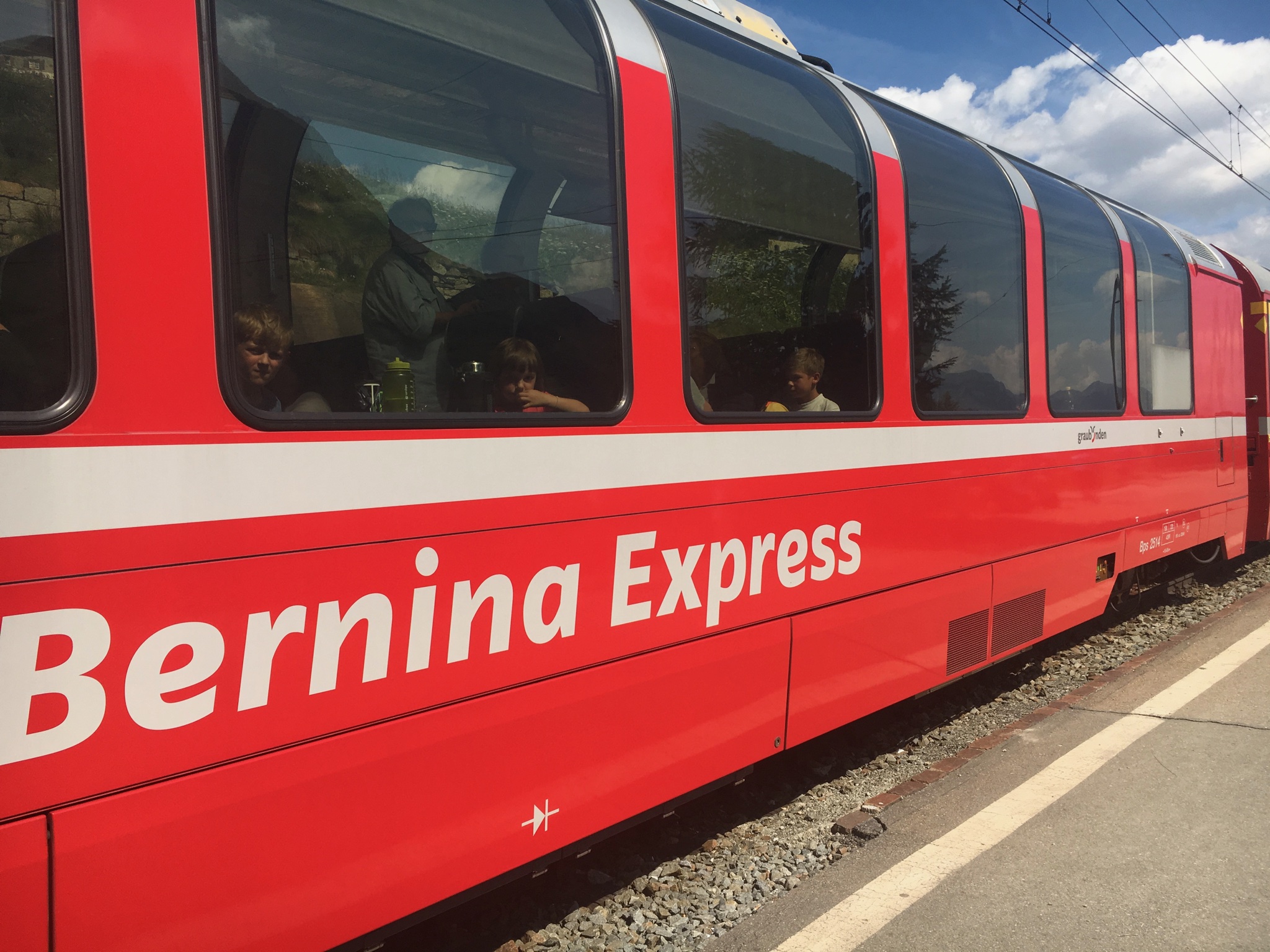 Le voyage de Wädenswil à Coire est déjà impressionnant. On passe par le lac de Walenstadt, surplombé par une immense falaise rocheuse (un genre d’Acropole des draveurs). À Coire, on embarque sur la ligne du Bernina express, en route vers St-Moritz. Ce n’est pas seulement le paysage qui est impressionnant, mais aussi les hauts faits de génie civil qui ont permis à ce train de suivre une telle route. On traverse ainsi le célèbre Landwasser Viadukt, long de 150 m, haut de 65 m et construit en … 1902!